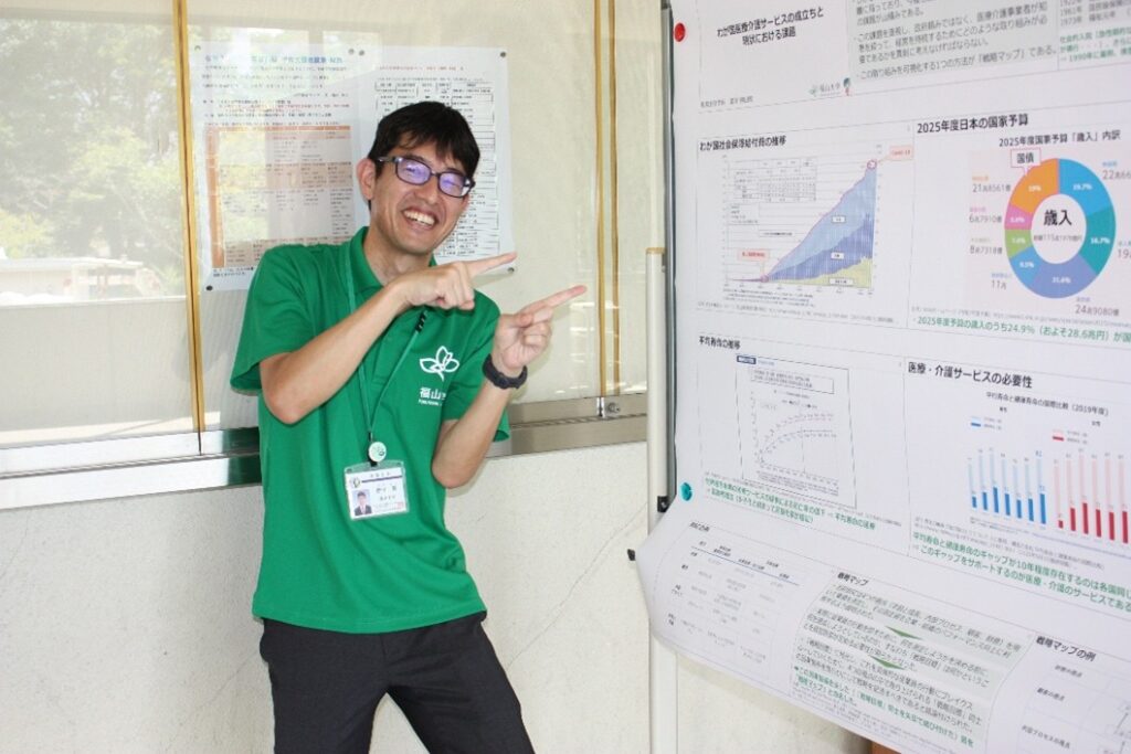 勝田篤講師のポスター展示「わが国医療介護サービスの成立ちと現状における課題」