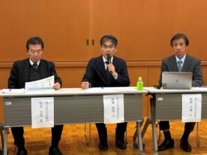 福山市経済環境局渡邉真悟経済部長(中央)の発表の様子