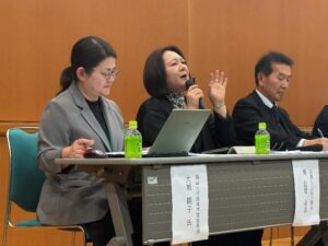 続いて、経済学部税務会計学科の大城朝子准教授が登壇し、SDGsの取り組みを一人ひとりが自分自身の課題として捉え、身近なところから実践していくことの重要性について述べました。個人の意識の変化が社会全体の持続可能性を支える基盤となることが強調されました。