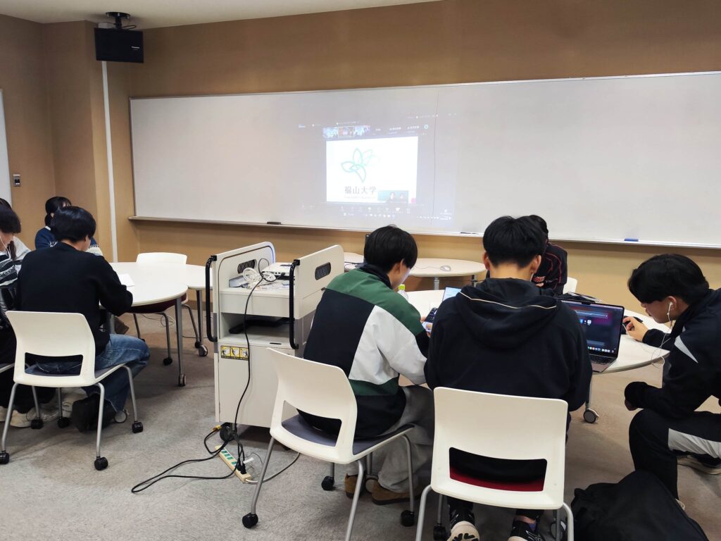 各自のスマホやPCでzoomに入りブータンの学生と交流する福大生