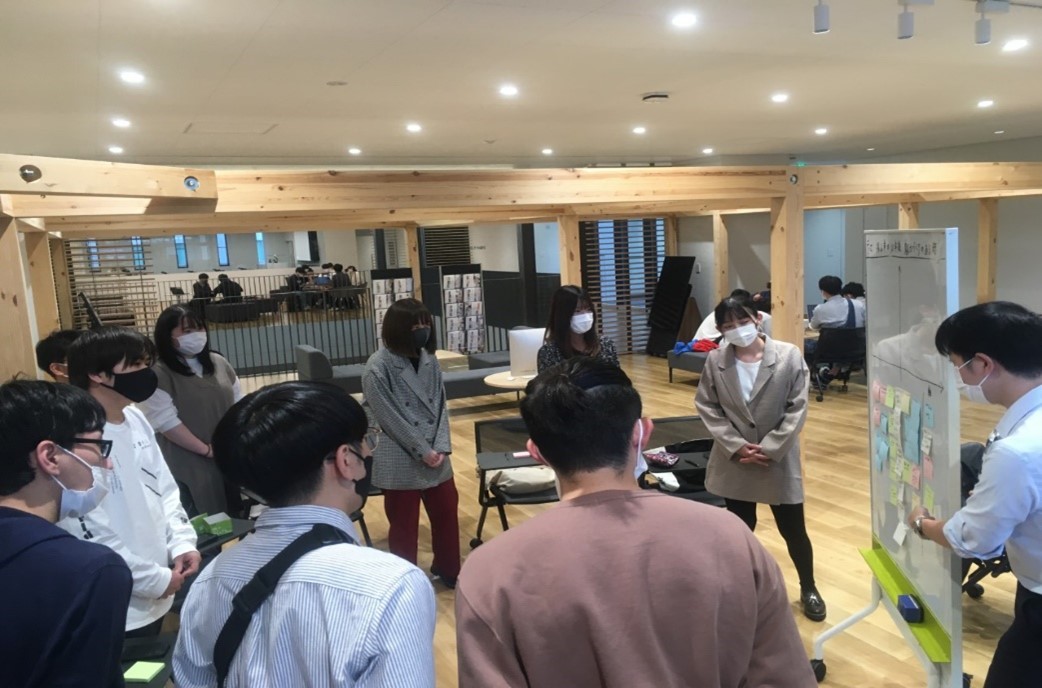 メンターであるソフトバンク平川様が大学へご来校くださり、グループワークを行いました。