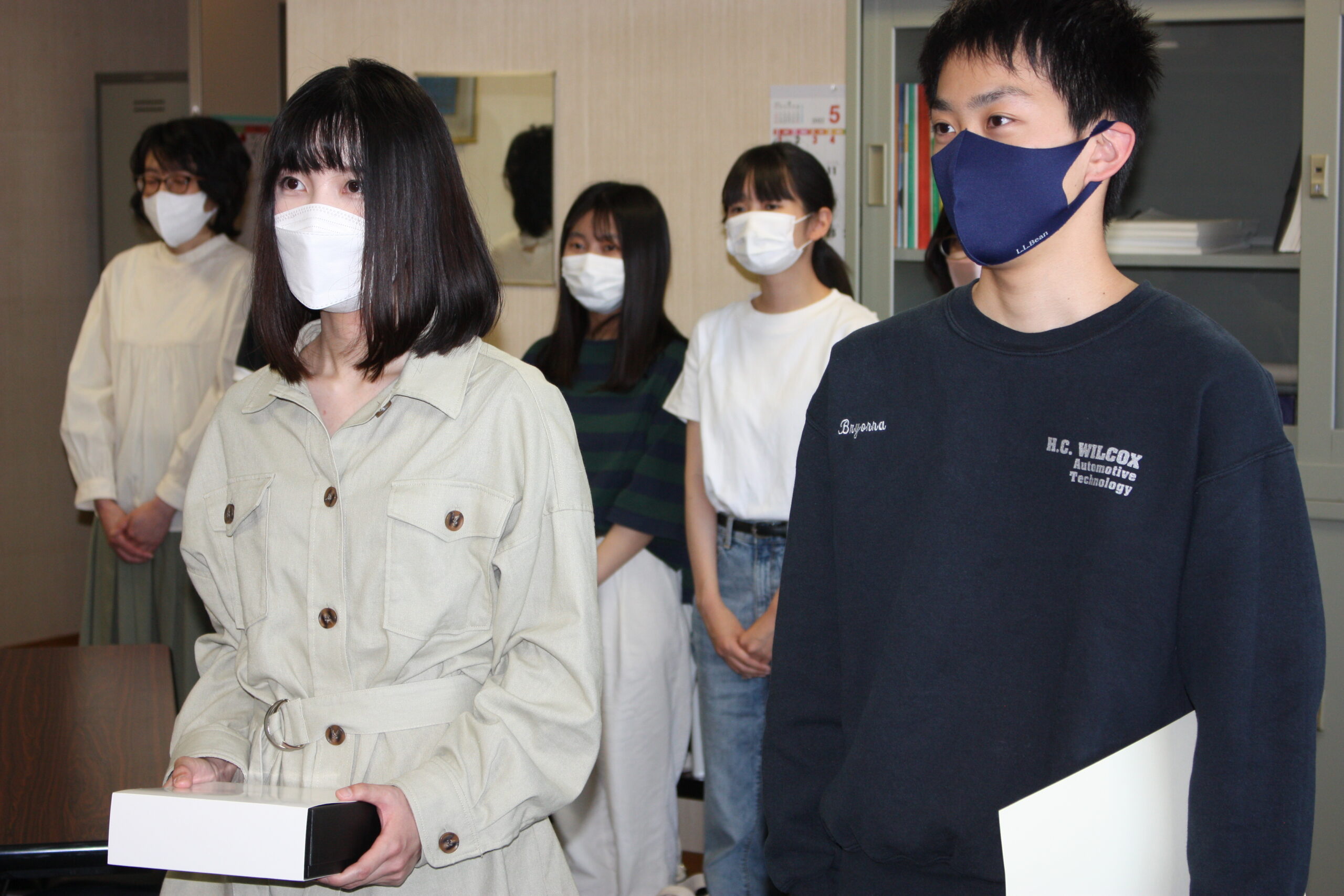 ↑表彰式を前に緊張する高羅ゼミ生(左端は高羅講師)
