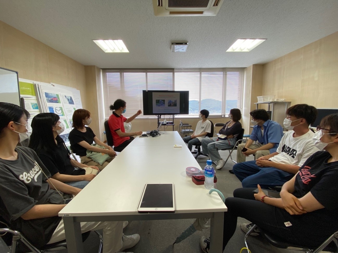 Later on Wednesday Dr. Gospodinov joined the GCC (Global Communication Club), a collaboration between the Department of International Economics, the University Education Center, and the International Centre. Each week 10-15 Japanese and International students gather in the Global Lounge to exchange ideas, participate in activities, and promote cross cultural experiences. Dr. Gospodinov gave the students a talk on best practices of photography. Then the students were given 10 minutes to take a photo on campus, and he judged their results in an impromptu photo contest.