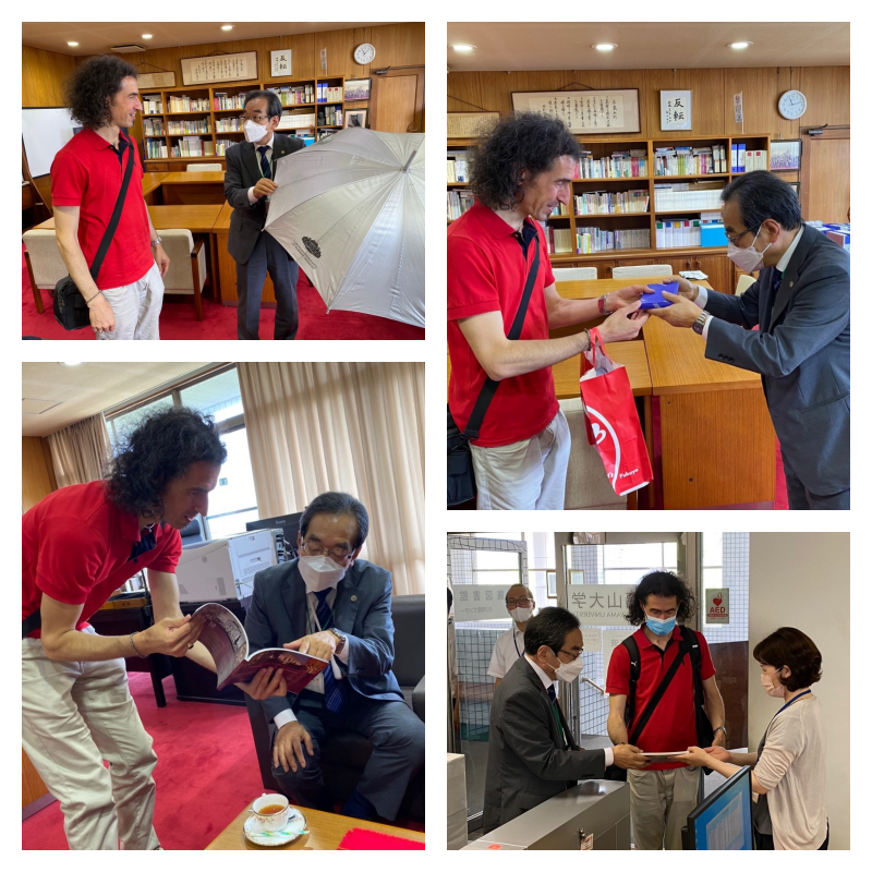 On Dr. Gospodivov’s last day, he visited President Otsuka’s office to say goodbye. President Otsuka gave him some souvenirs to take home to Bulgaria and showed him the umbrella that he received when he visited Sofia in 2017. Then Dr. Gospodinov generously donated a copy of his book to the University library.