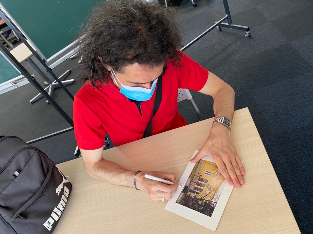 木曜日には、ゴスポディノフ教授が「ストリートフォトグラフィー」をテーマにして、日本語と英語の共同クラスで講演を行いました。たった1枚の写真から公開写真の撮影に関するルール、倫理観、経済状況など様々なことが理解できることに学生はとても感銘を受けました。