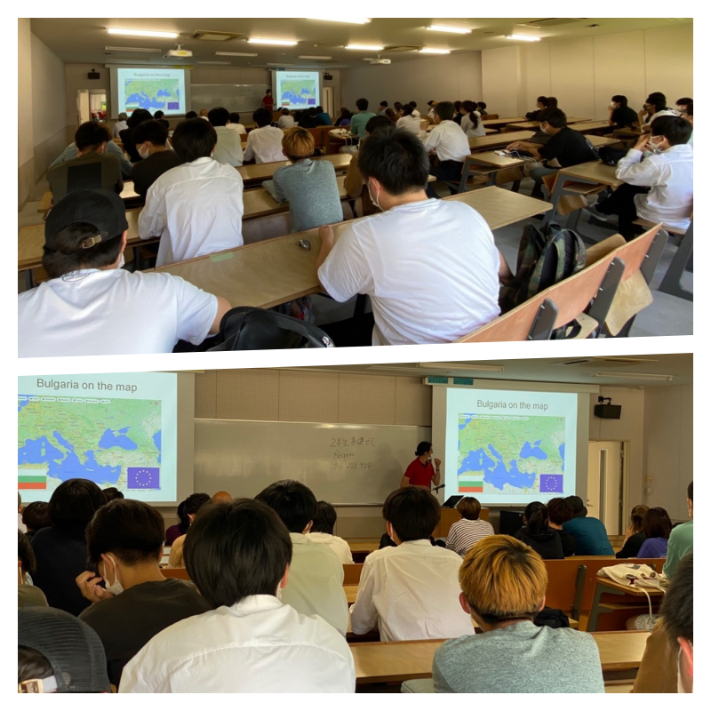 水曜日には、ゴスポディノフ教授がブルガリアの教育について、公開講演を行いました。この特別講義には、大塚学長をはじめ、国際経済学科、薬学部、生命工学部海洋生物学科、国際センター、IR室、大学教育センターなどから、多くの教職員と学生が参加しました。当時、ゴスポディノフ教授は未来創造館の最先端の施設にとても感銘を受けたとのことでした。