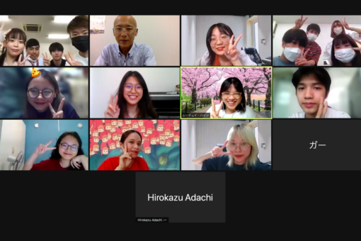 国際経済学科の足立です。本学科では、これまでもインドネシアのマハサラスワティ大学と英語によるオンラインディスカッション、日本語によるオンラインディスカッション、zoomを利用したリアルタイム観光案内など海外協定校との交流を続けてきました。今回実施したのは福山大学の協定校であるベトナム貿易大学とのzoomを使った日本語による交流会です。