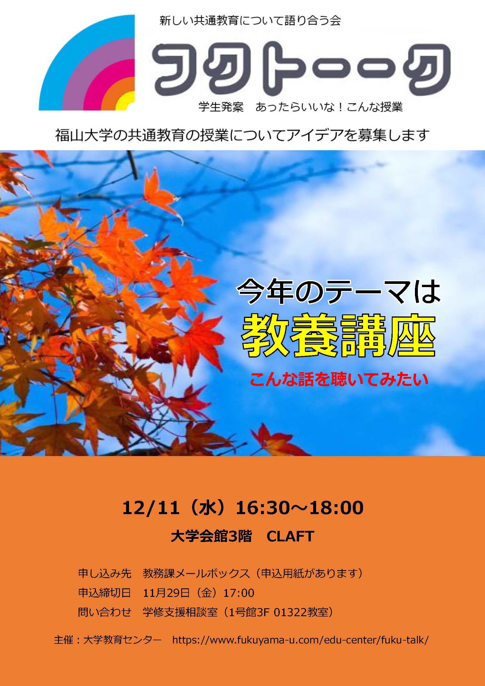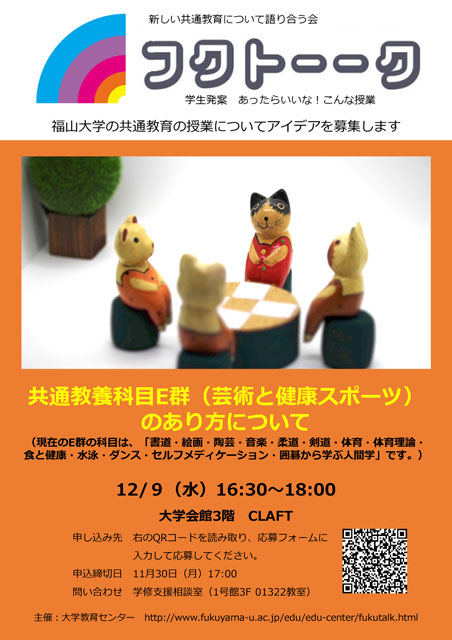 福山大学の共通教育の充実を図るために,魅力的な授業について学生の皆さんと一緒に考えることを目的として始まりました.