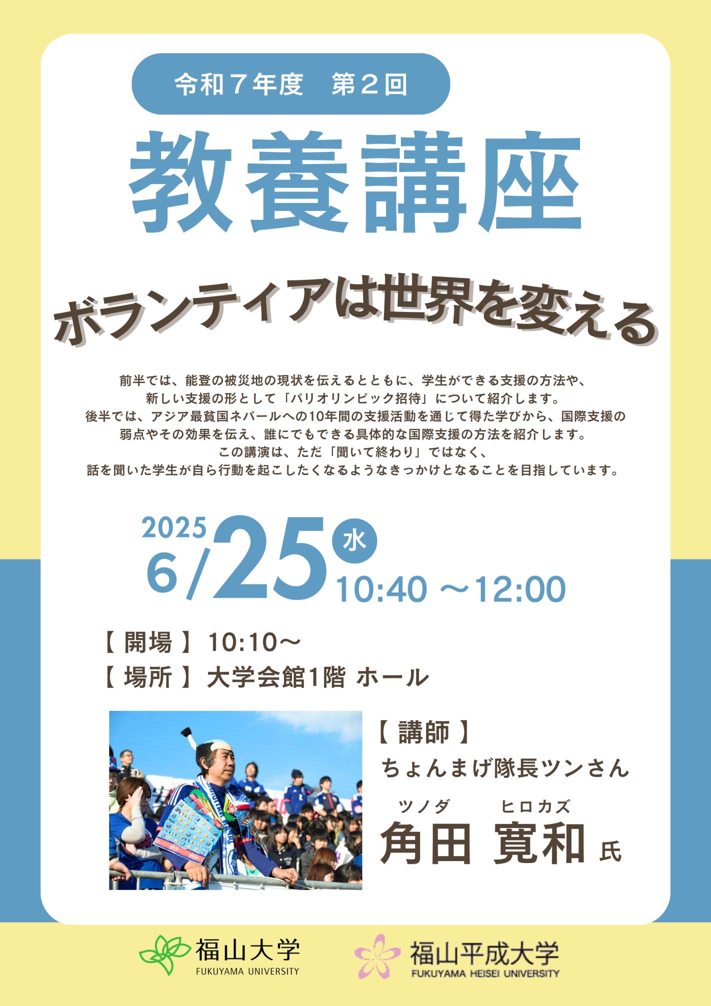 - 特別警報が福山市・尾道市以外の近隣地区で発表されていても,この2市では発表されていない場合は、休講とはなりません。ただし、この2市では特別警報が発表されていなくても、学生の登校に危険があると本学が判断した場合には上記の休講措置をとることがあります。