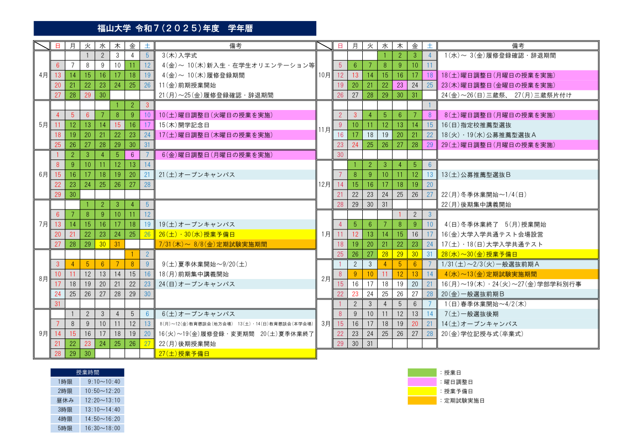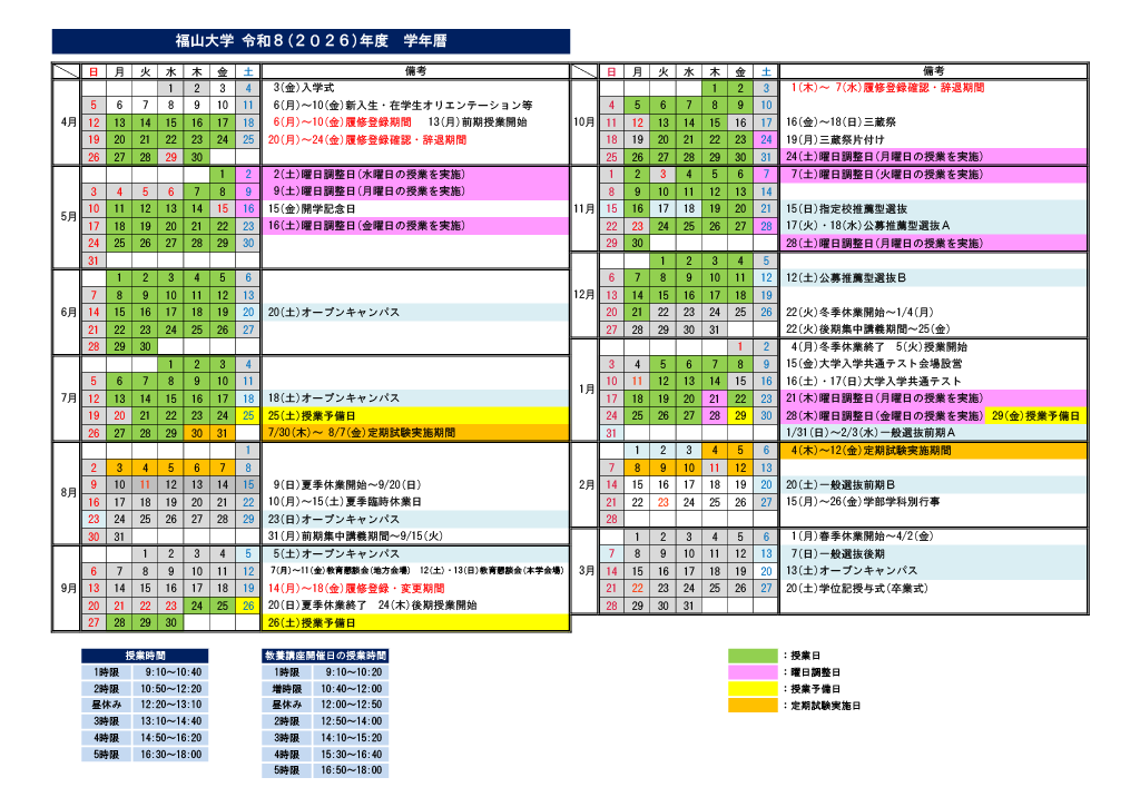 ※春・夏・冬季の休業期間中に補講および集中講義を実施する場合があります。