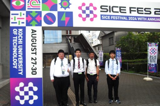 学長から一言:高知で開催されたSICE(計測自動制御学会)という国際学会の2024年度年次大会で発表した大学院生の本田さん、行平さん、お疲れ様でした。日頃の研究の成果を多くに人の前で発表、しかも英語で説明するという大きな課題を無事為し終えて、きっと充実感、達成感を感じていることでしょう。一方でグローバルに活躍する上での課題も痛感したかも知れません。さらなる研鑽に期待します。
