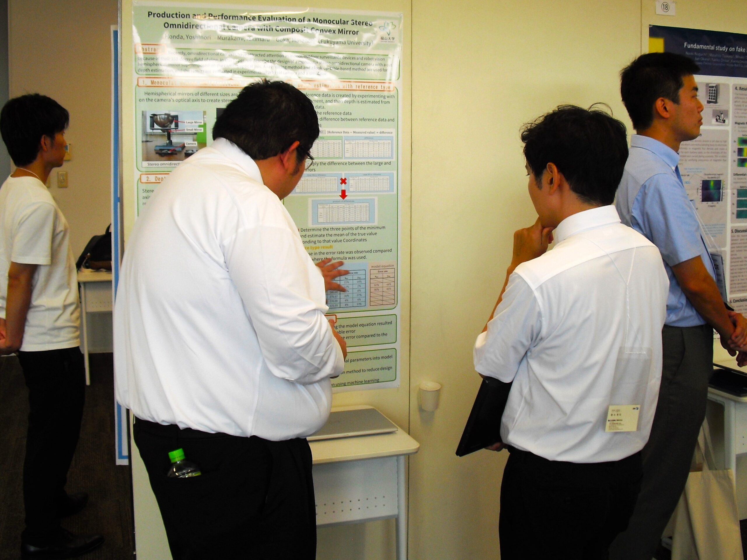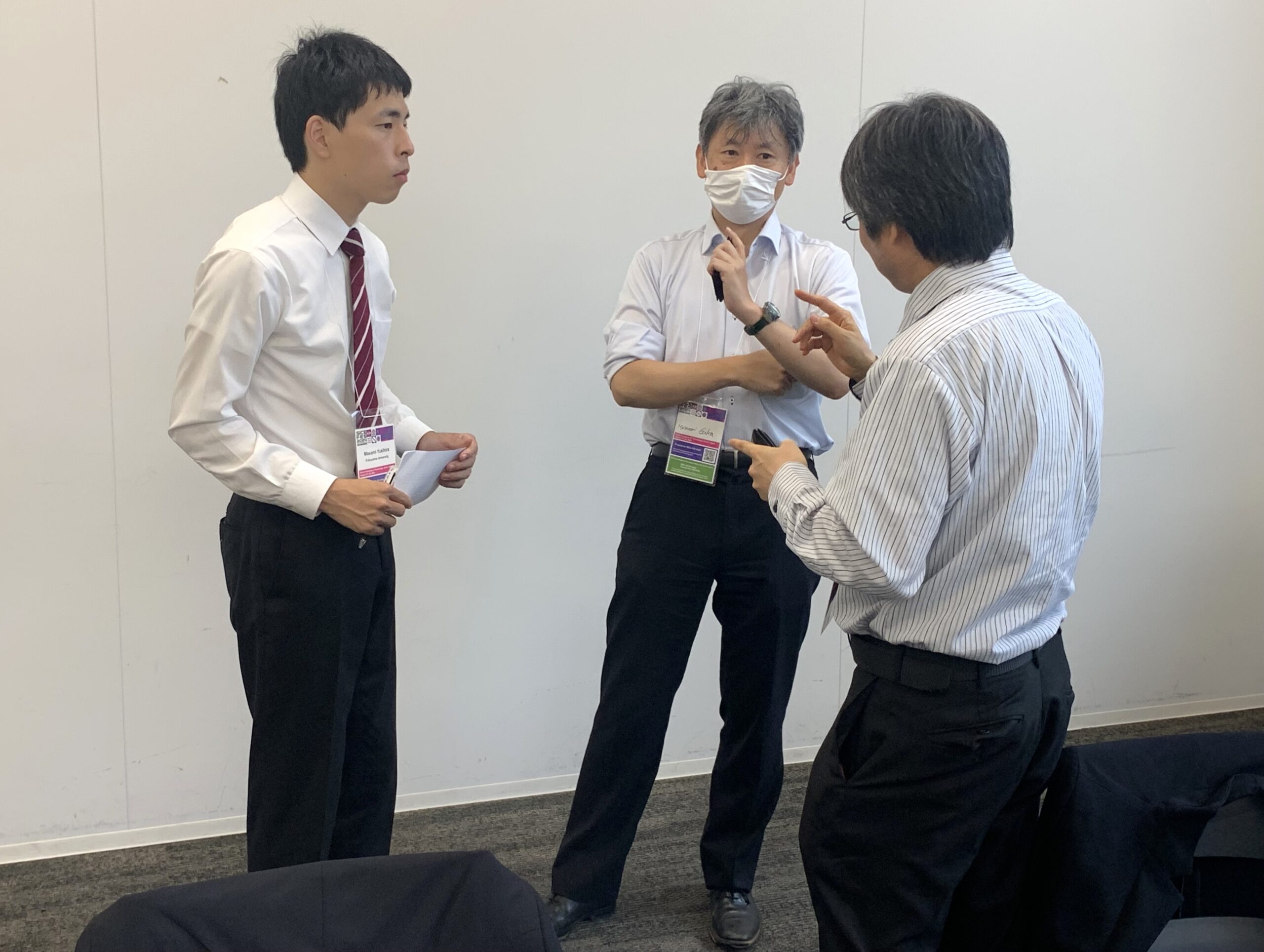 休憩時間に改めて研究説明をしました。左 行平将望さん、中 私(伍賀)