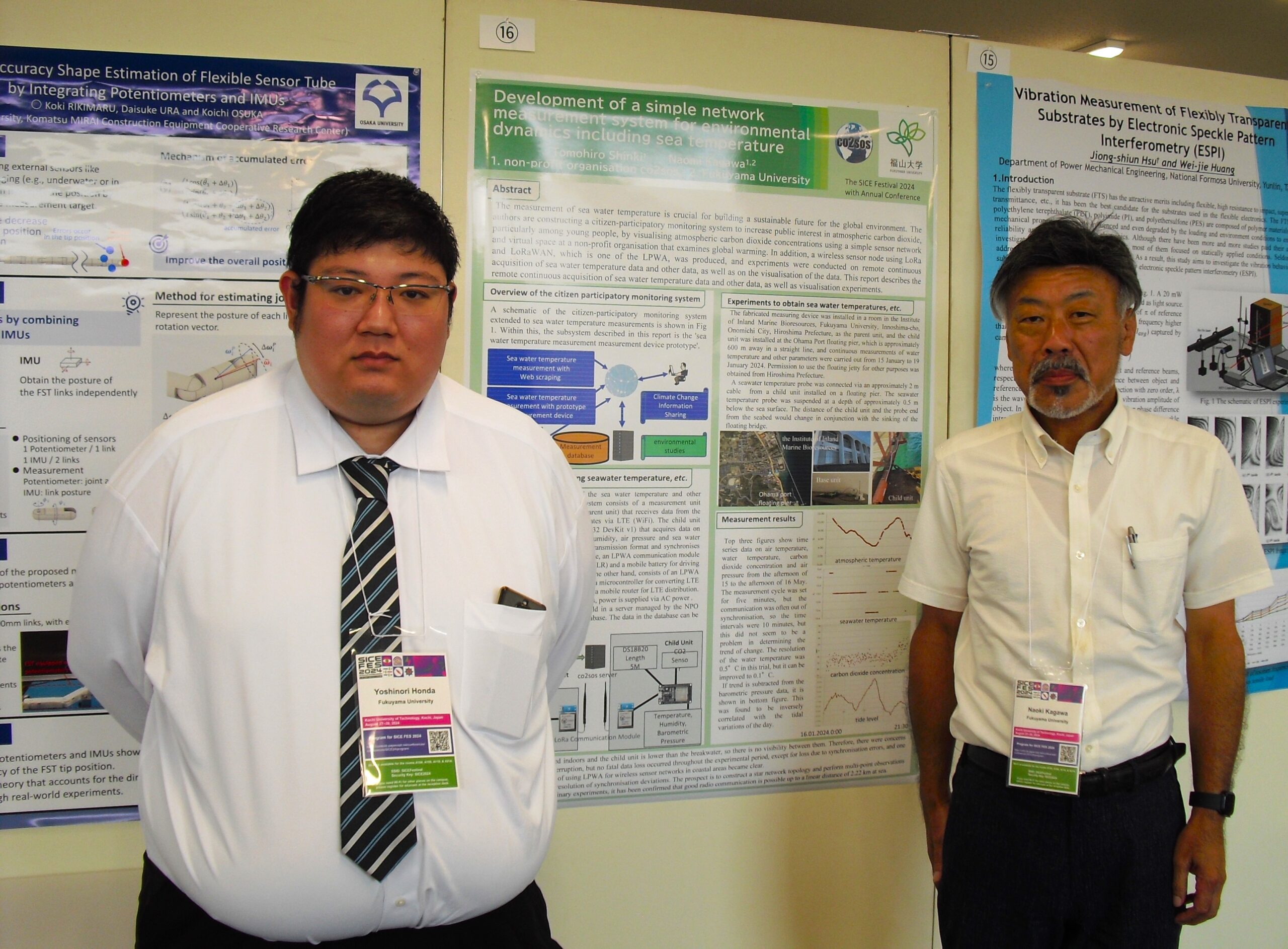 8月27日~30日の日程で、The SICE Festival 2024 with Annual Conference(計測自動制御学会2024年度年次大会)が高知工科大学永国寺キャンパスで開催されました。この学会で、大学院工学研究科電子・電気工学専攻の本田義典さんと行平将望さんが発表しました。また、電気電子工学科4年生の川上翔大さんも学会参加しました。この様子を工学部電気電子工学科のFUKUDAI Magメンバーである伍賀から報告します。