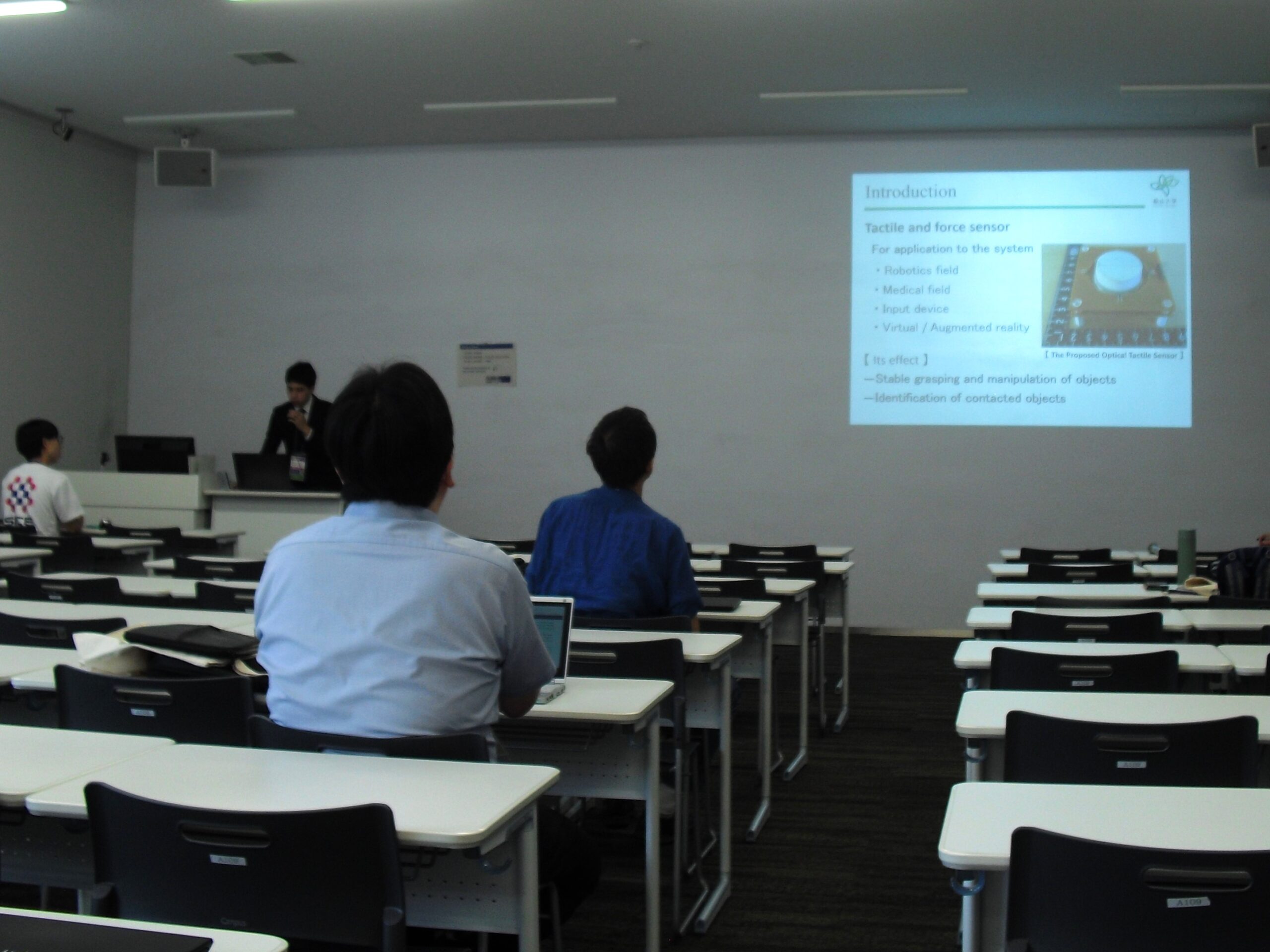 Sensors and Transducers のセッションで、行平さんは“Development and Performance Evaluation of an Optical Tactile Sensor Using Transparent Flexible Resin”(Yukihira,Masami, Goka,Masanori)のタイトルで登壇し口頭発表、ポスター発表Poster2 のセッションで、本田さんは“ Production and Performance Evaluation of a Monocular Stereo Omnidirectional Camera with Composite Convex Mirror”(Honda,Yoshinori, Murakami,Rikimaru, Goka,Masanori) のタイトルでポスター発表しました。