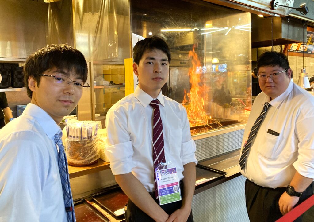 今回、台風接近の状況の中、様子をうかがいながら安全に注意して高知の学会へ移動しました。タイトなスケジュールで限られた時間の中でしたが、会場近くの観光市場で、高知名物のカツオのたたきを食べることができました。ハイレベルな国際学会での英語での発表ということで、大変苦労もしましたが、発表した院生にとっても貴重な勉強の機会になったのではないかと思います。