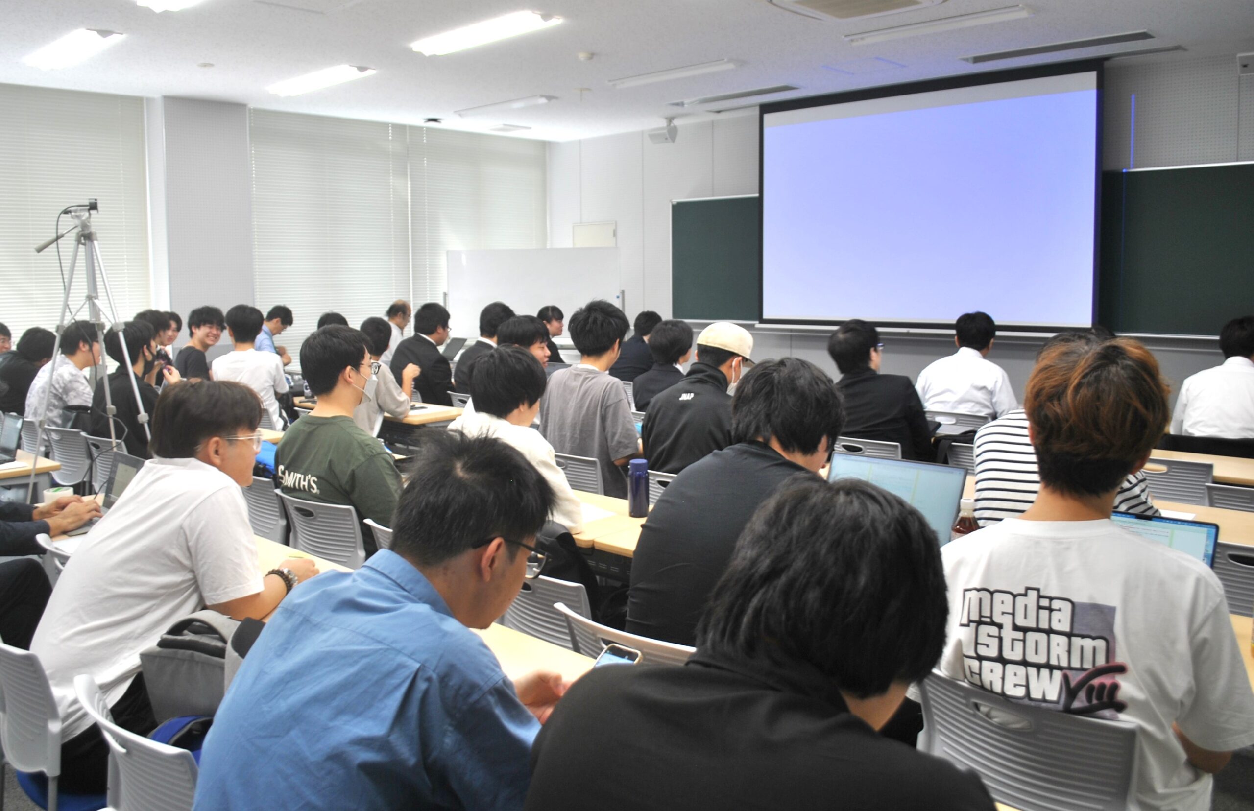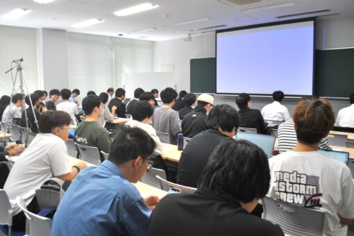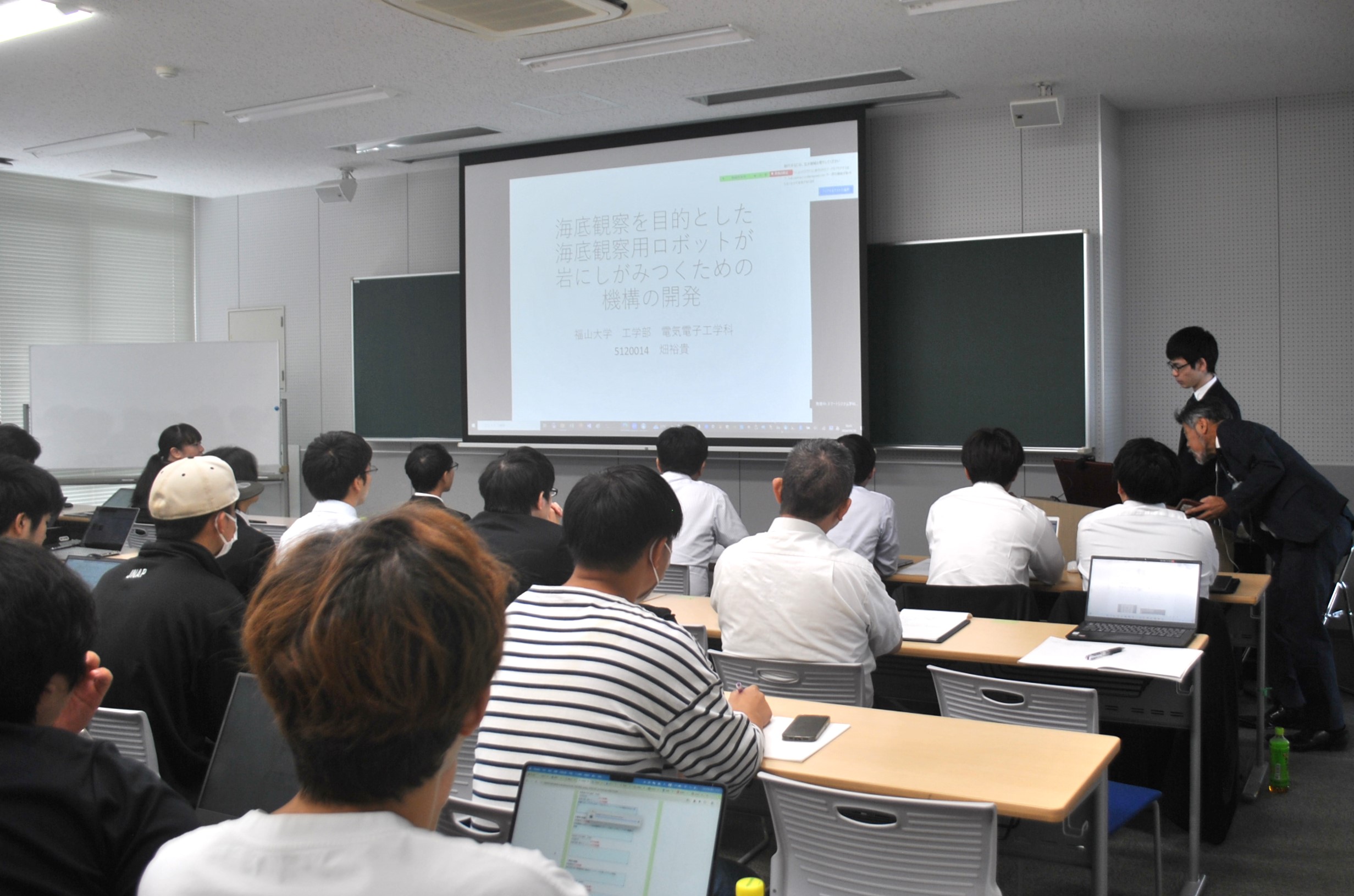 ここ数年、卒業研究発表会・中間発表会は、実際の口頭発表に遠隔会議を組み合わせたハイフレックス方式で開催していますが、今回の中間発表も卒業研究に取り組む4年生は実際の会場で登壇発表を行いました。また、研究室配属を控えた3年生は、研究室見学の一環で会場にて聴講しました。