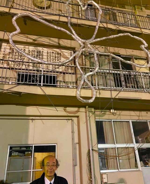 学長から一言:毎年、近隣の緑丘小学校のイルミネーション点灯のために支援や協力を惜しまない電気電子工学科の田中聡准教授が今年も一肌脱ぎました。美しい仕上がりに集まった方々は大喜びだったに違いありません。地元のために持てる知識や技術を提供するのは、地域との連携を大事にする本学の教員の鑑です。