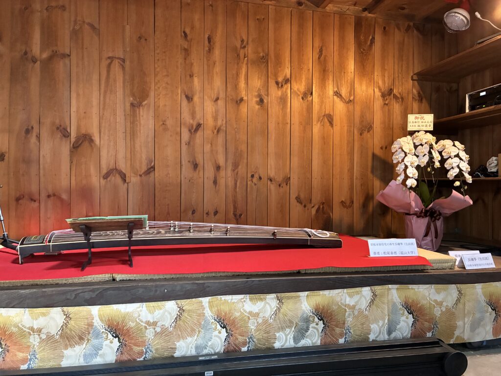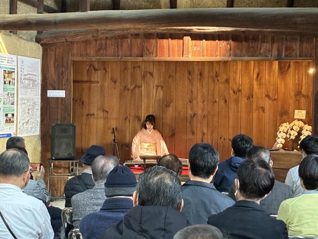 はじめに、先日福山大学建築学科を卒業した松尾奏恵さんによる再生箏の演奏があり、春の季節にふさわしい「さくら」をモチーフとした曲が披露されました。