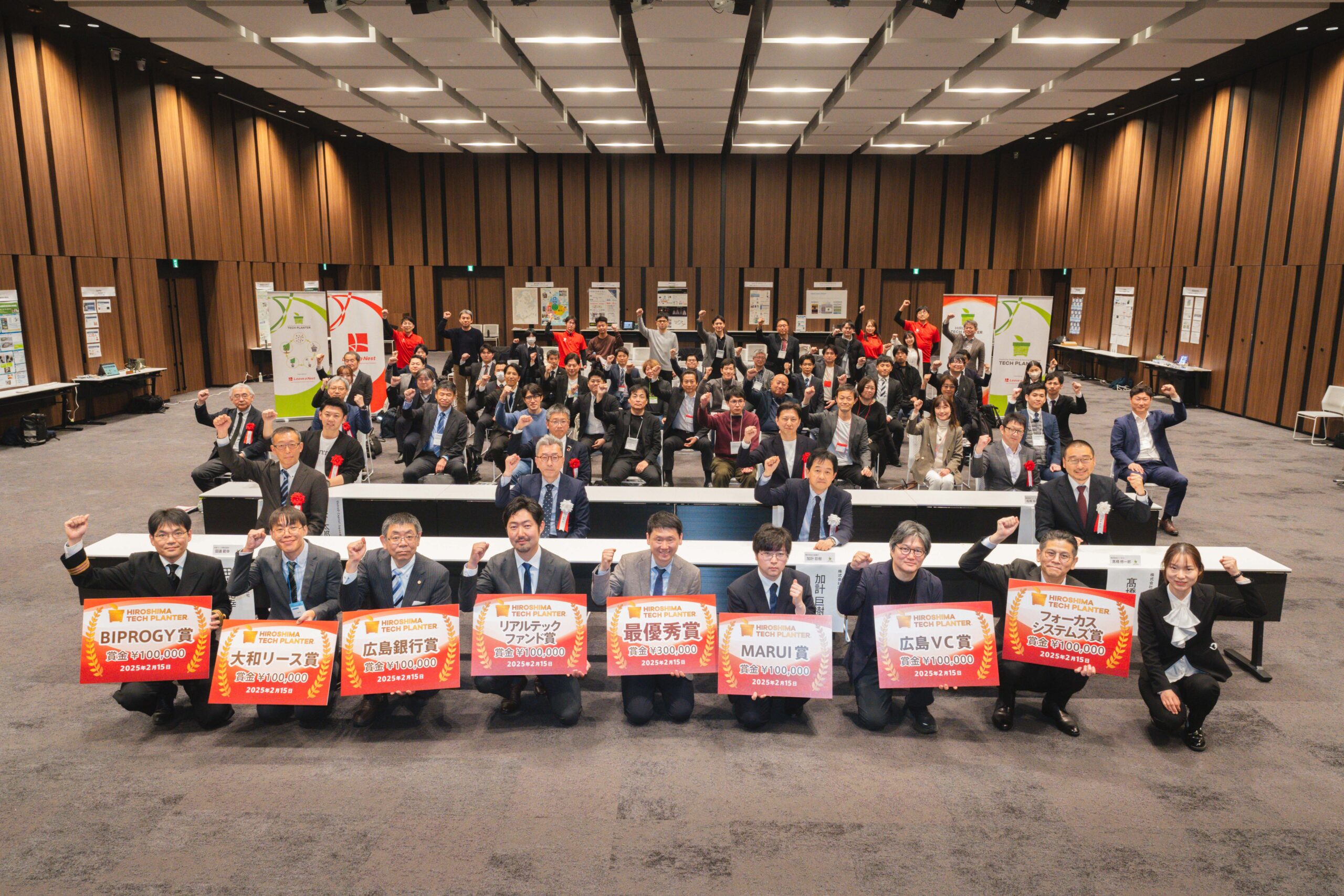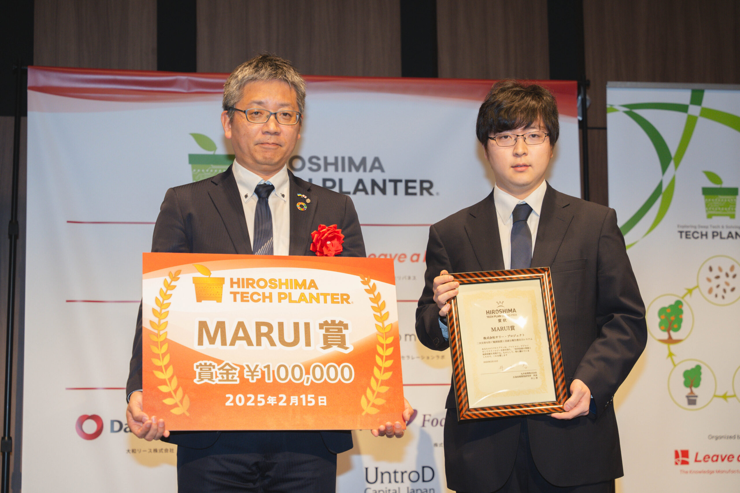 2025年2月15日に、ひろぎんホールディングス本社のホールで「第5回広島テックプラングランプリ」が開催され、大学院工学研究科を修了したOBで福山大学の研究生と大学発ベンチャー企業(株式会社サリー・プロジェクト)の一員という二足の草鞋で活躍している村上力丸さんがファイナリストとして出場し、見事にMARUI賞を受賞しました! 広島テックグランプリには、第一回、第二回と福山大学の教員が出場し、企業賞を受賞していますが、研究生としてそれに続く快挙です。その模様について、工学部電気電子工学科のブログメンバーの伍賀が投稿します。