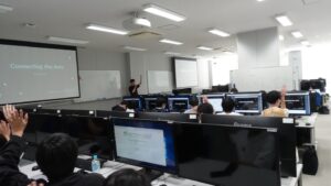 情報工学科では、島根県授業支援型交流事業として情報系の採用がある3社から1年生向けに「学生時代にやっておくこと」について出前授業をしていただきました。