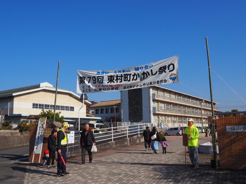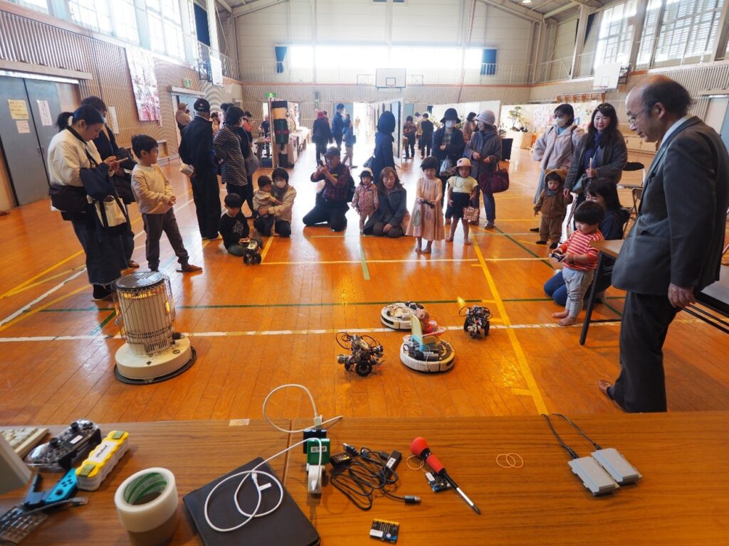 電気電子工学科の田中です。福山大学の地元である(旧)東村小学校で毎年開催される「東村町かかし祭り」は、地域の方々が手づくりで準備する温かい行事で、今年で79回目を迎えました。晴天に恵まれた会場にはユニークな“かかし”が並び、家族連れや多くの地域住民でにぎわい、終日活気にあふれていました。今年も電気電子工学科としてロボット展示と操作体験コーナーを出展し、最新のAI技術と学生制作ロボットを地域のみなさんに体験していただきました。