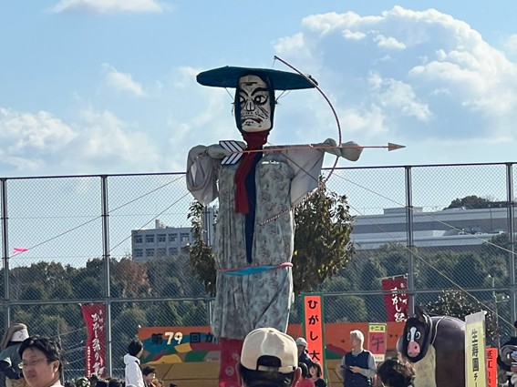 世相にあわせたおもしろい“かかし”が勢ぞろいし、大阪万博のミャクミャク君の仮装パレードが登場するなど、晴天に恵まれた会場は多くの人でにぎわいました。