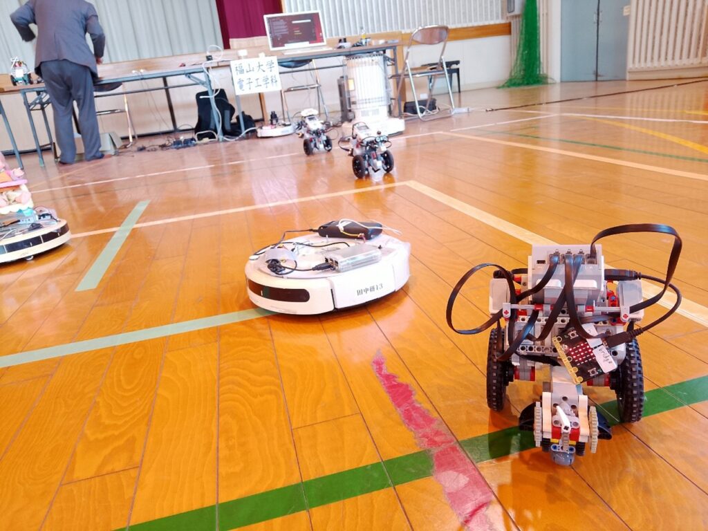 今回展示したロボットたち。手前がLEGOロボット、奥がルンバです