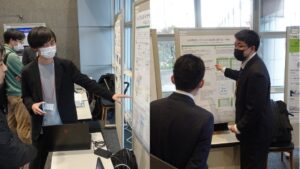 インタラクティブ発表ではポスターを掲示したうえでデモも踏まえて参加者の方々と議論し、今後の研究に向けてのアドバイスも受けることができます。福山大学からも情報工学科から4年が5名、工学研究科から2名が普段の研究をインタラクティブ発表してきました。