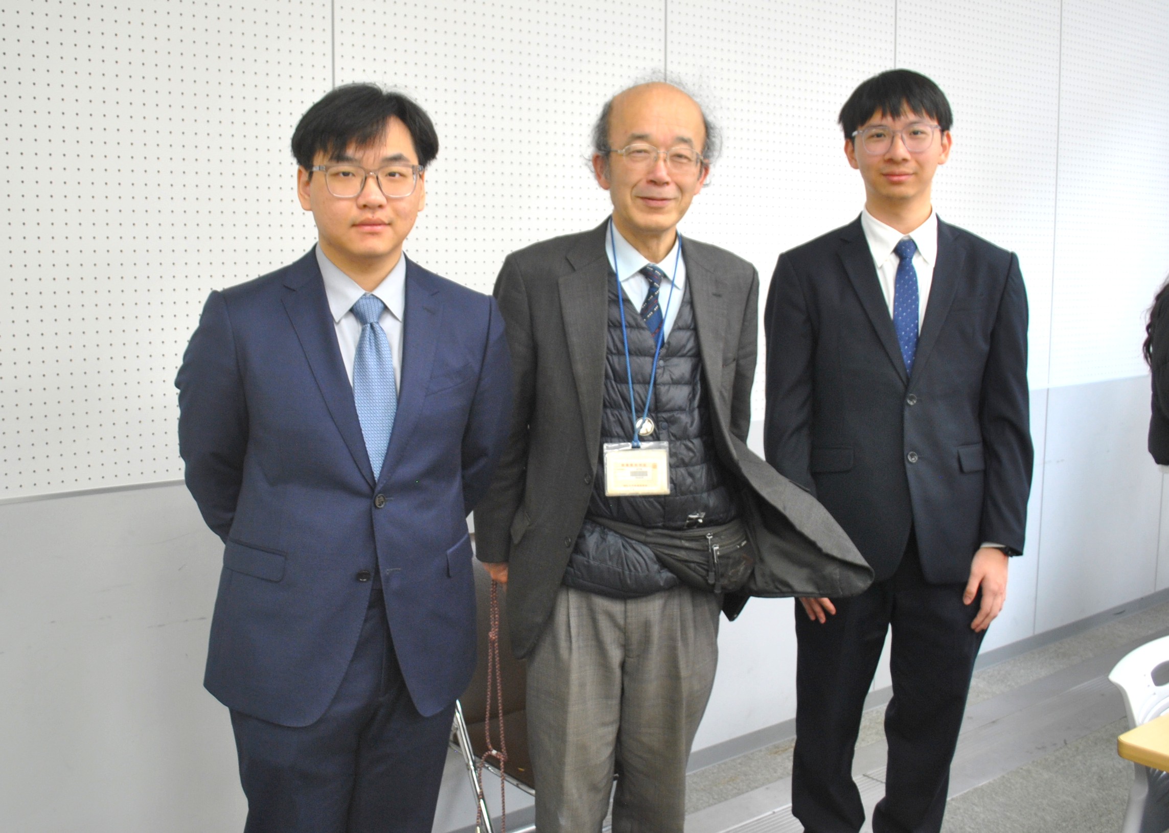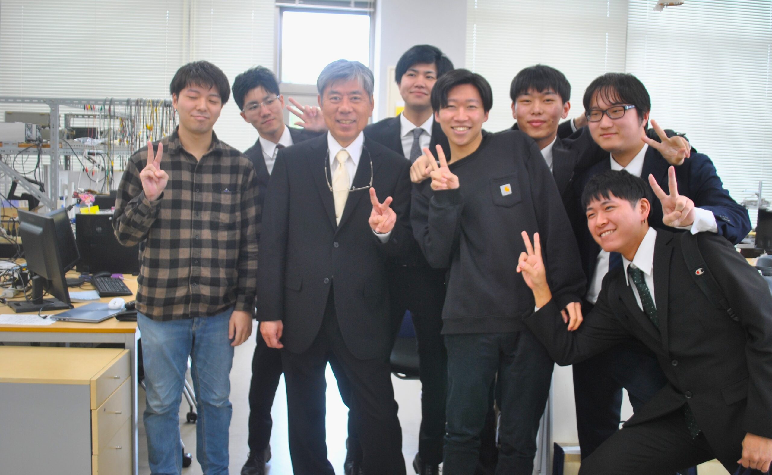 そして、式の後では、研究室に場所を移し、大学院生や先輩も駆けつけ、世代を超えた交流の中で記念撮影が行われました。