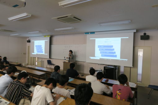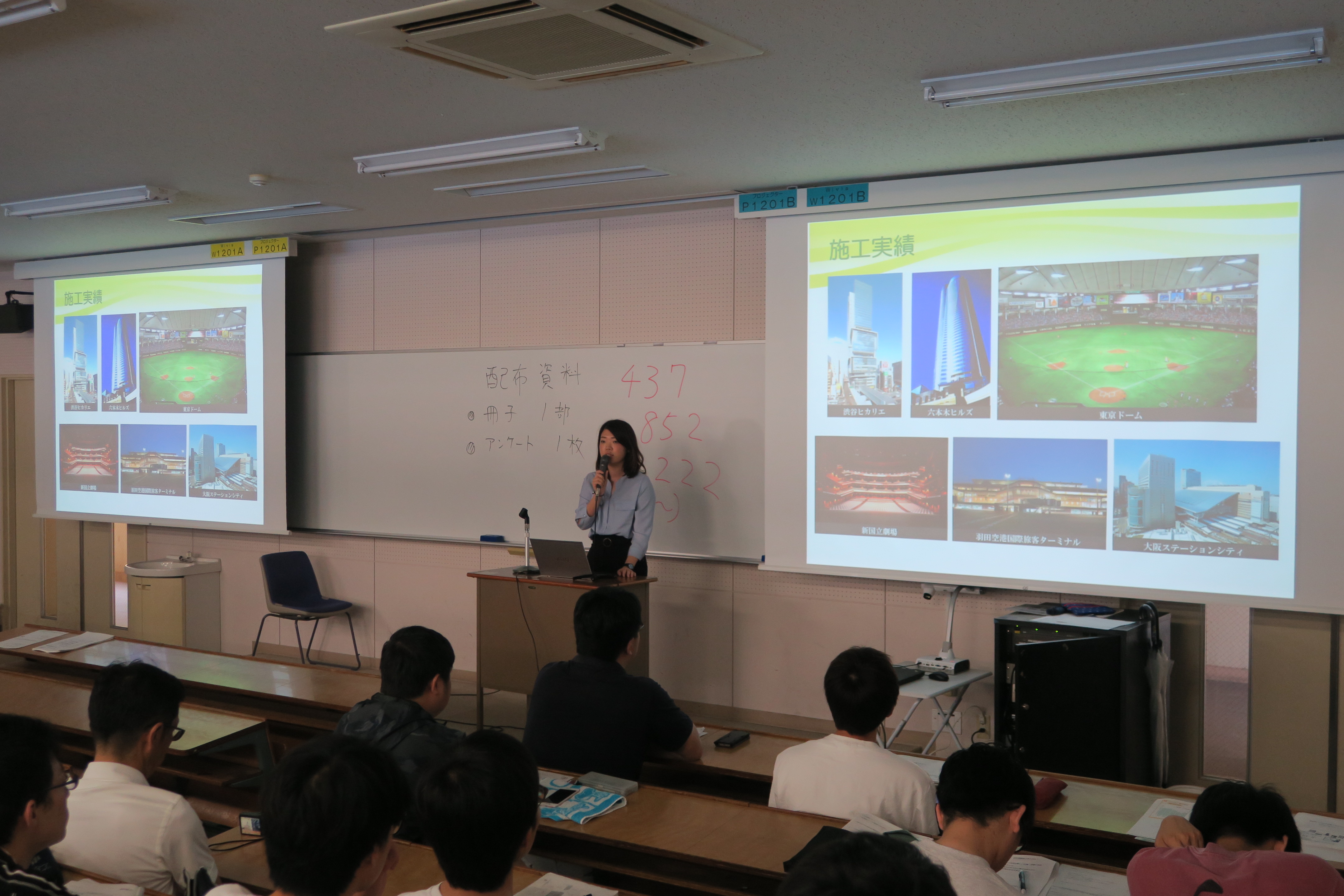 7月25日(木)13:00~14:30、外部講師として「設備女子会(中国・四国支部)」の皆さま(以下5名)をお招きし、これから就職活動が本格化する建築学科3年生を対象に「出張教室」を実施していただきました。