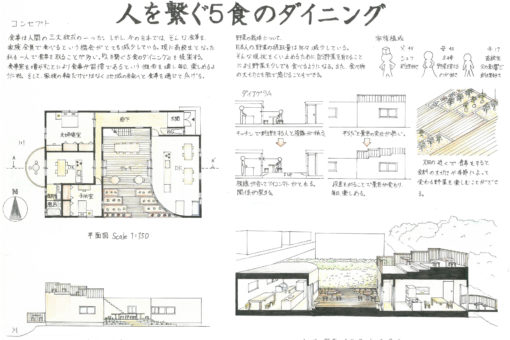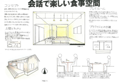 「優秀」に選定された作品は、「食事空間を中心とした住まいの提案」と「家族団らんで楽しい食事を」です。