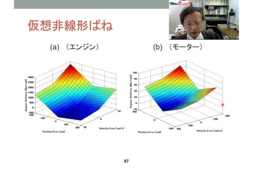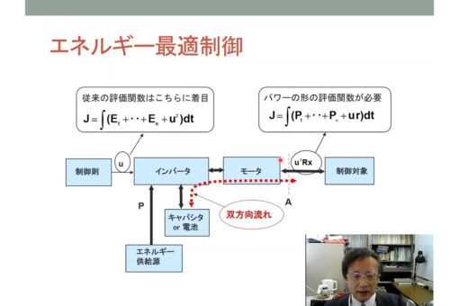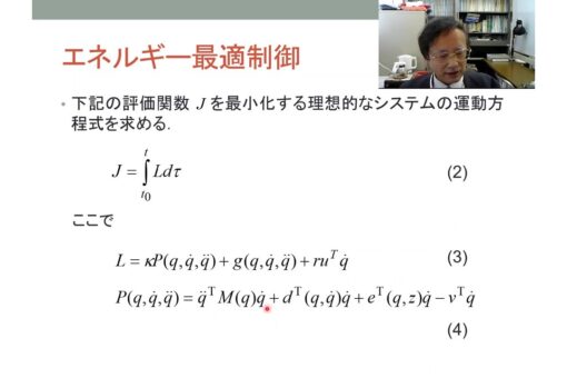 ①消費エネルギーを最小化すると同時に回収パワーを最大化する制御を容易に実現できる。この記事のトップの画像は、研究集会でそのことを説明しているところです。下の写真は制御法の理論式を説明しているところです。