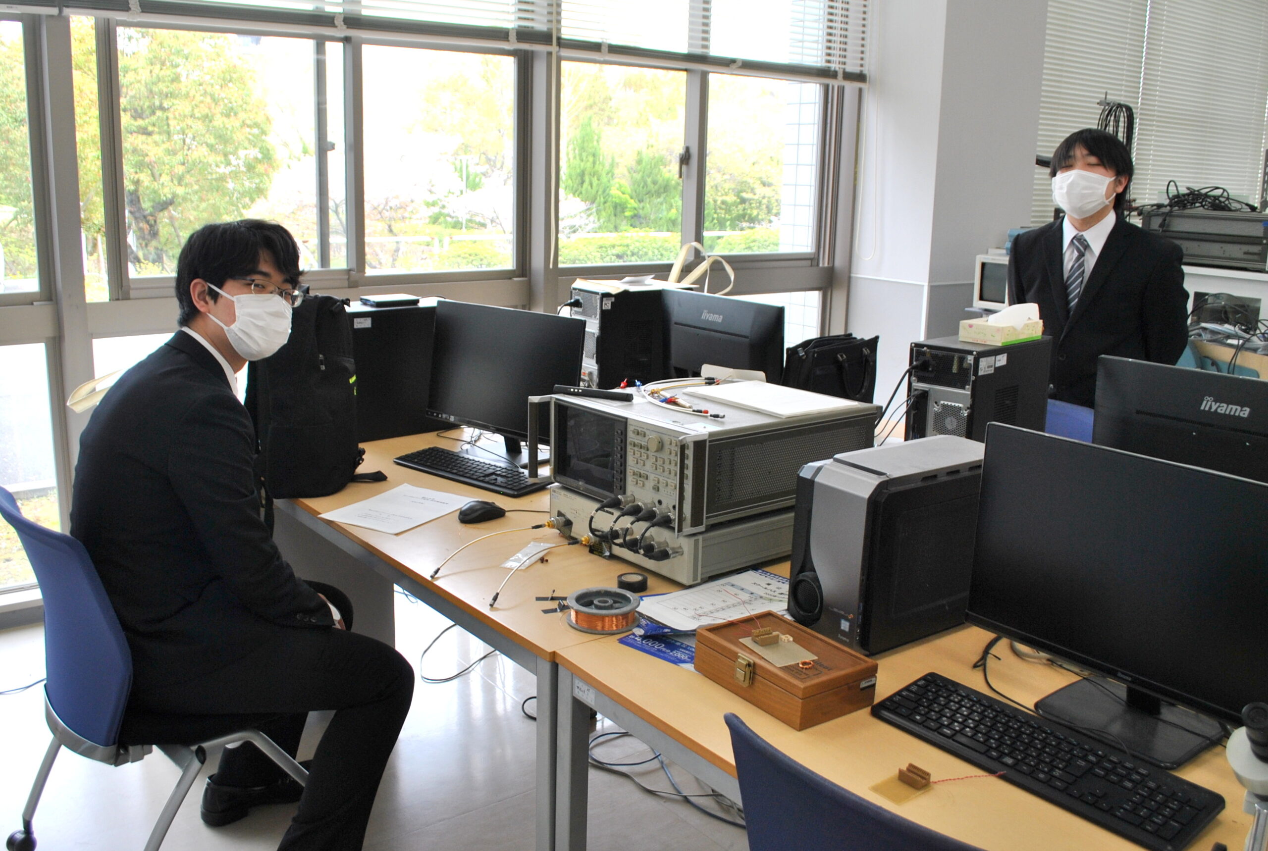 菅原聡准教授の電子回路研究室では、次世代の超小型電源回路システム開発を目指しています。電源回路の小型化のために、磁気部品の小型化の研究開発や、さらに、開発した小型磁気部品を使った電源回路の高性能化などの研究を行っています。以下のような測定装置を使って、回路の特性の改良の研究を進めていく予定があり、彼らの活躍が期待されます!
