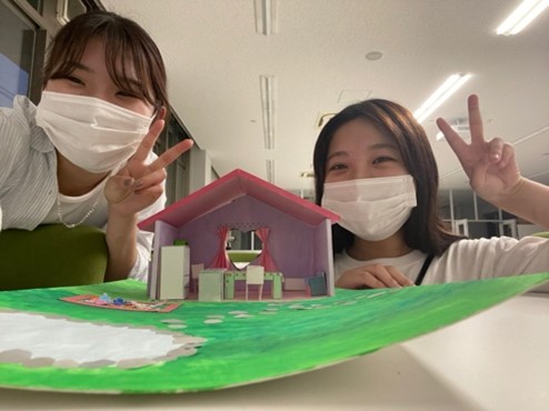 びんご建築女子「子ども模型教室」運営メンバーの石江と烏田と藤田です。