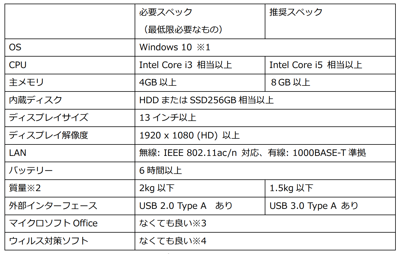 ノートパソコンの準備についてのご案内(令和4年度入学生)