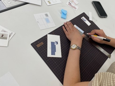 家具はスチレンボードに紙を貼って、切る場所が分かりやすいようになっています。