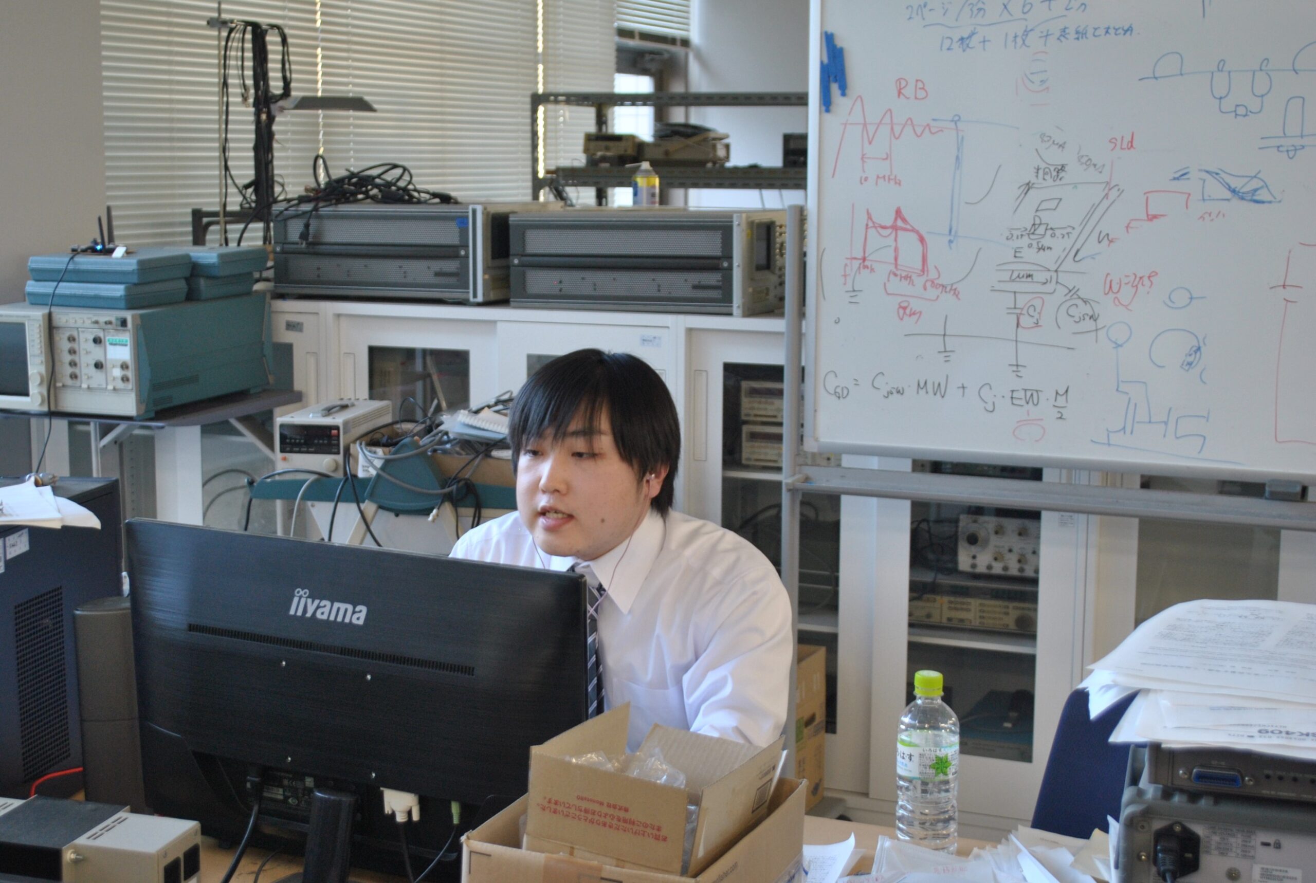 「私の研究は高速でスイッチングする新材料半導体スイッチのサージをリアルタイムで制御する回路の開発を行っています。今日の発表では電流サージの検出方法と設計した検出回路について発表しました。多角的な質問がとても刺激になりました。」