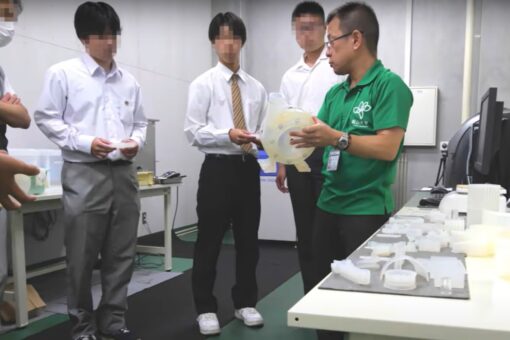 続いて、3Dプリンタの見学を行いました。家庭用とは違った高精度な造形が出来る3Dプリンタで、原理や授業での活用の仕方などの説明がありました。