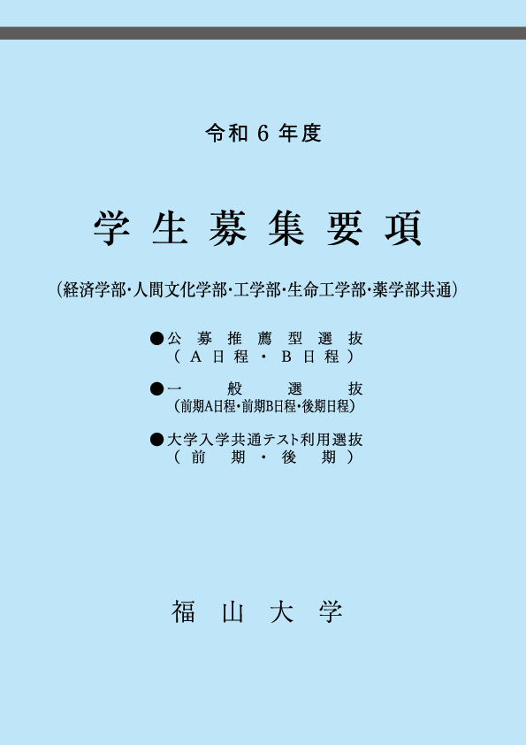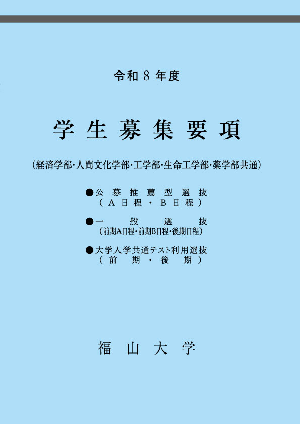 大学案内資料は、本学(入試広報室(大学会館1階))または学校法人福山大学社会連携推進センター(福山駅北口徒歩2分)にて配布を行っています。