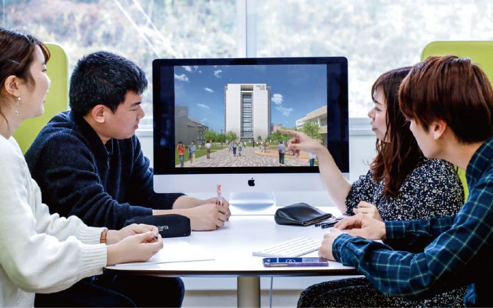スタッフが学内の施設・設備をご案内します。福山大学のキャンパスの雰囲気を体験してください!