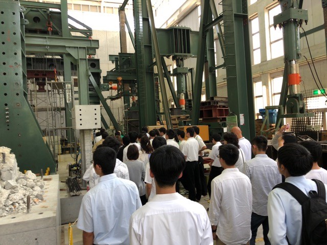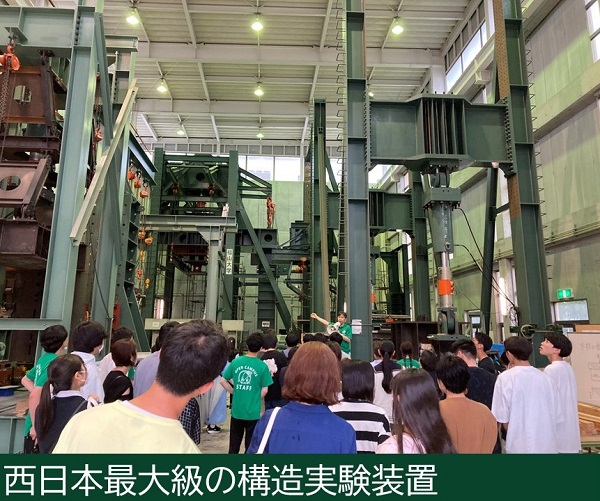 建築学科の学生が毎日を過ごす校舎を歩きながら、家具製作実習で作った椅子や設計作品の展示を見ていただけます。実習室をはじめとした学習環境を見学いただいたり、西日本最大級の実験装置、完成したばかりのものづくり工房の施工現場も見学します。