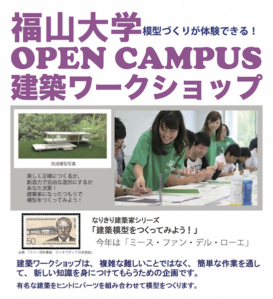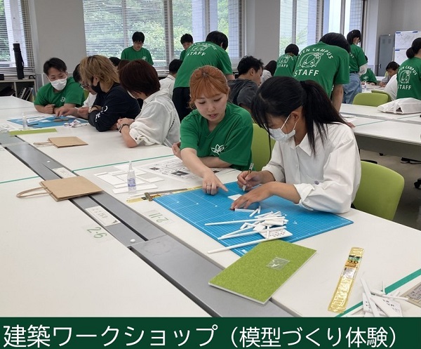 下記の内容から好きなものを選んで体験いただけます。 ・建築学科見学ツアー!(2号館・ものづくり工房・30号館) ・有名建築の中を歩いてみよう!(ファンズワース邸CG体験) ・折り紙建築をつくってみよう!