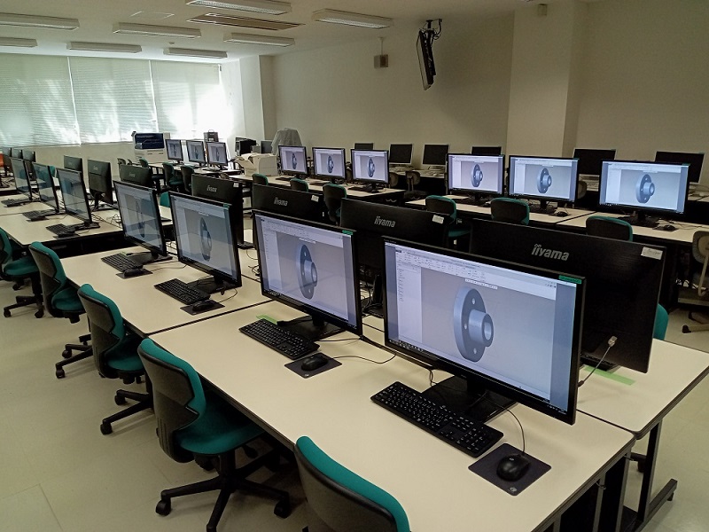 CAMはコンピュータ支援による加工のことです。コンピュータを使用し自動工作機械を制御して加工を行います。ここでは、実際に工作機械を動作させCAMシステムによる金属加工の様子を体験していきます。また、実習工場にある旋盤やフライス盤などの工作機械や大学での実習内容について大学生が詳しく説明します。