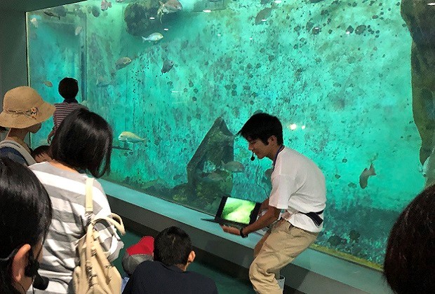 因島キャンパスのマリンバイオセンター水族館において、水生生物に関する展示の作成や飼育管理など、水族館を含む博物館施設で働くために必要な「学芸員資格」を取得するための博物館実習を体験して頂きます。