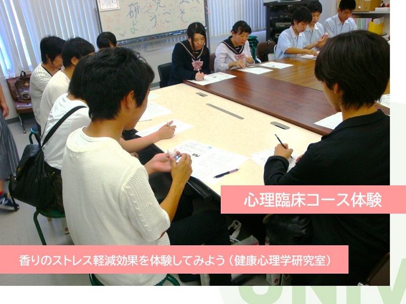 現代社会はストレス社会と言われています。皆さんはストレスを感じた時に、どうしていますか?心理学ではストレス軽減の様々な方法を学ぶことができます。そのひとつ、香りによるストレス軽減を、「健康心理学研究室」のメンバーと一緒に体験してみましょう。