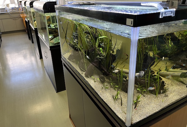 海洋生物科学科には本学キャンパスにも、実習や研究に関わる設備があります。キャンパスライフの参考になるよう、水槽や実験室などの紹介をします。