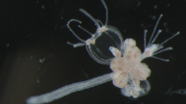 刺胞動物は、普段はポリプ型で無性的に増殖しますが、環境条件が悪くなるとクラゲとなって子孫を残します。クラゲのでき方はさまざまで、クラゲをつくらない種類もいます。私にはポリプが本来の姿で、クラゲは子孫を残すためのかりそめの姿に見えます。今回はクラゲは生殖器官(花)ではないかという私の説を講義します。