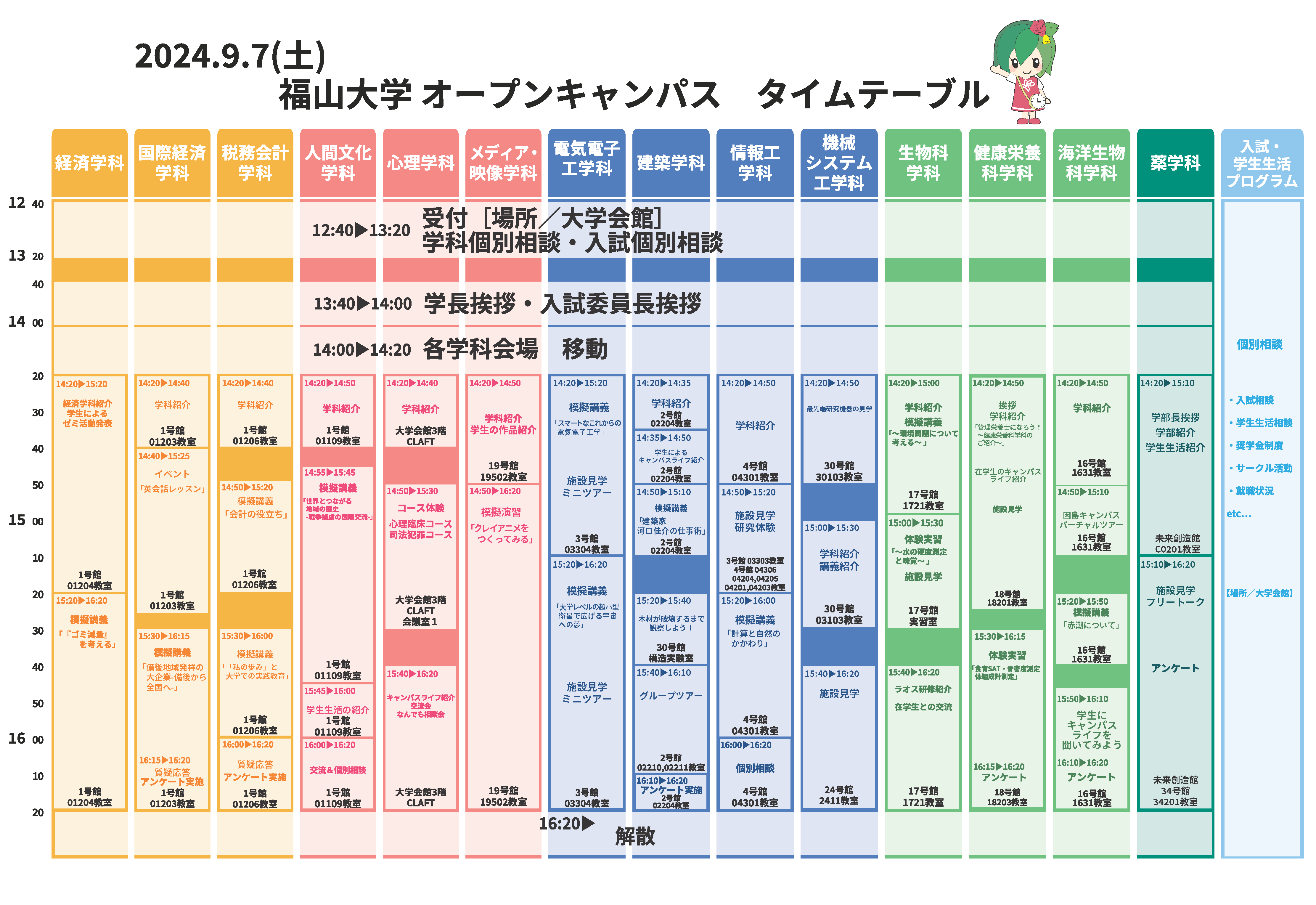 | 福山駅出発時刻 (福山駅北口・社会連携推進センター前) |