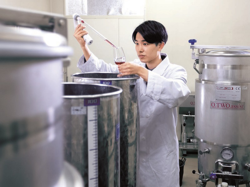 生物科学科の学生がワイン醸造のために栽培しているブドウが収穫期を迎えています。9月のオープンキャンパスでは、福山大学東村葡萄園でブドウの収穫を手伝ってもらいます。その後でブドウ果汁の糖分の分析には挑戦。もちろん参加者にはブドウのお土産もあります。