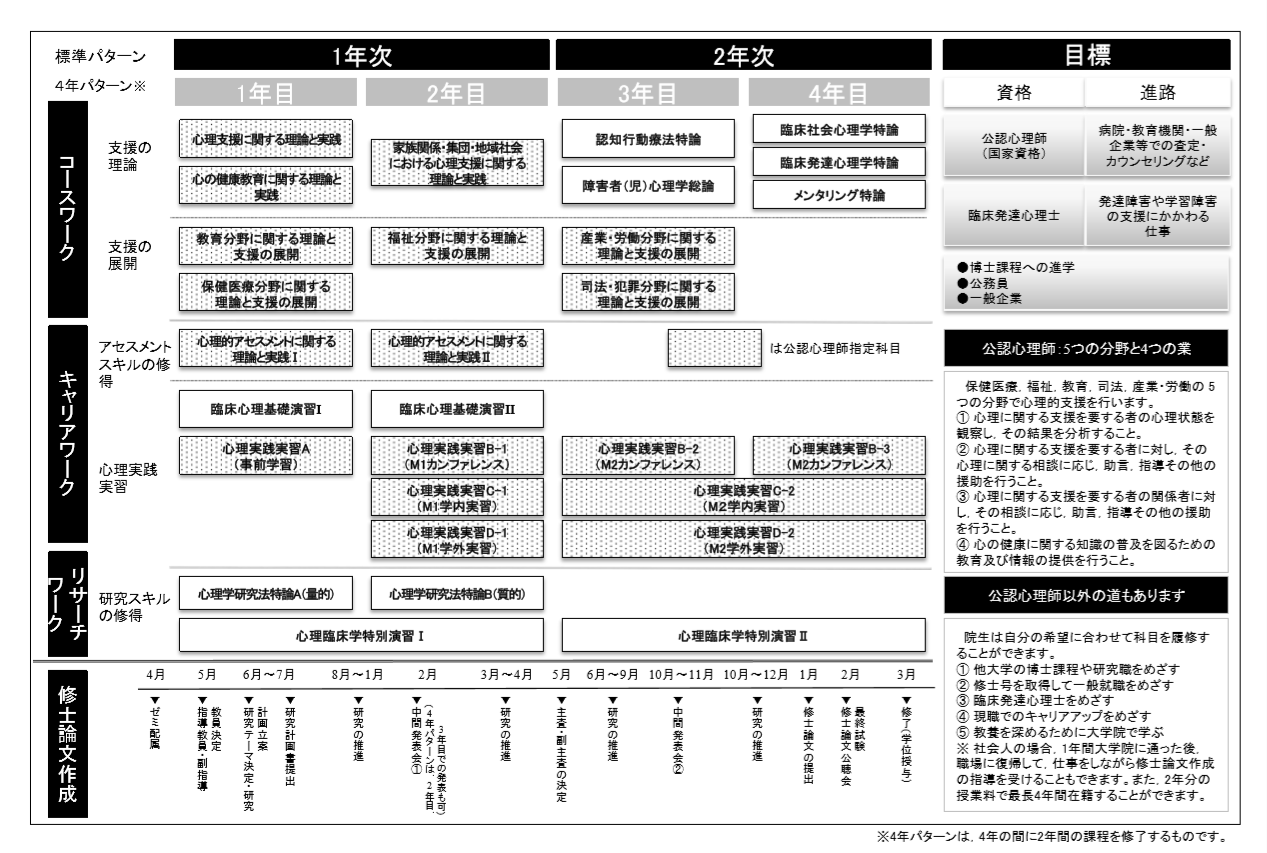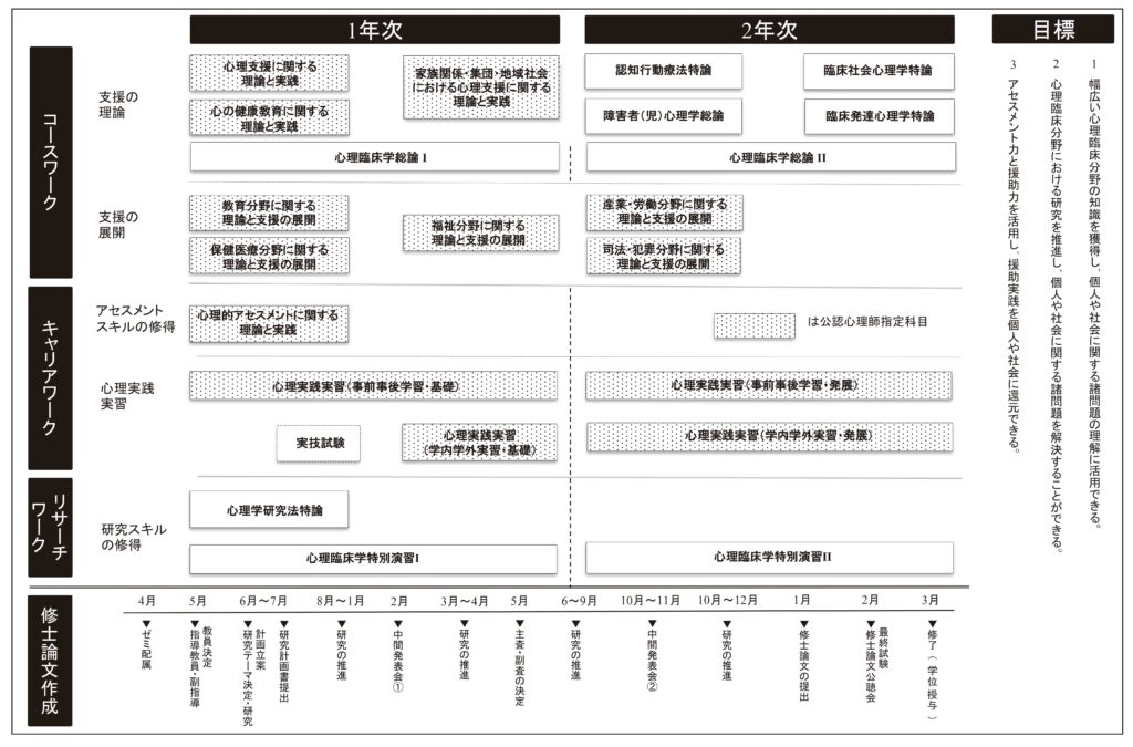 | 3月 | 修了(学位授与) ※学位記授与式は3月20日(取得できる学位は、修士(心理臨床学)となります。) |